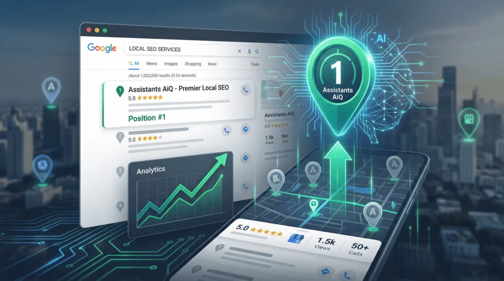 1. Profile Audit and Optimization: The Assistants AiQ team conducts a comprehensive audit of your Google Business Profile, identifies optimization opportunities, and implements immediate improvements.